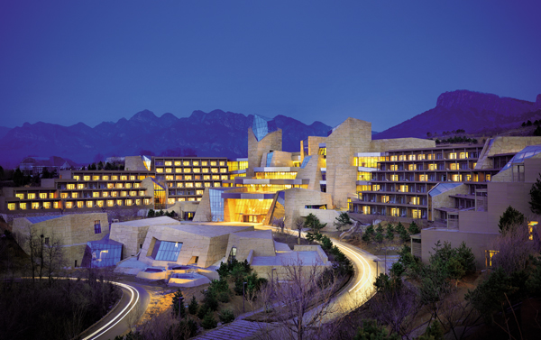 3. 山地建筑群节能设计达到65%,采用低温地板辐射采暖、高大空间空调分层独立调节设计,大面积应用再造石装饰板环保材料。