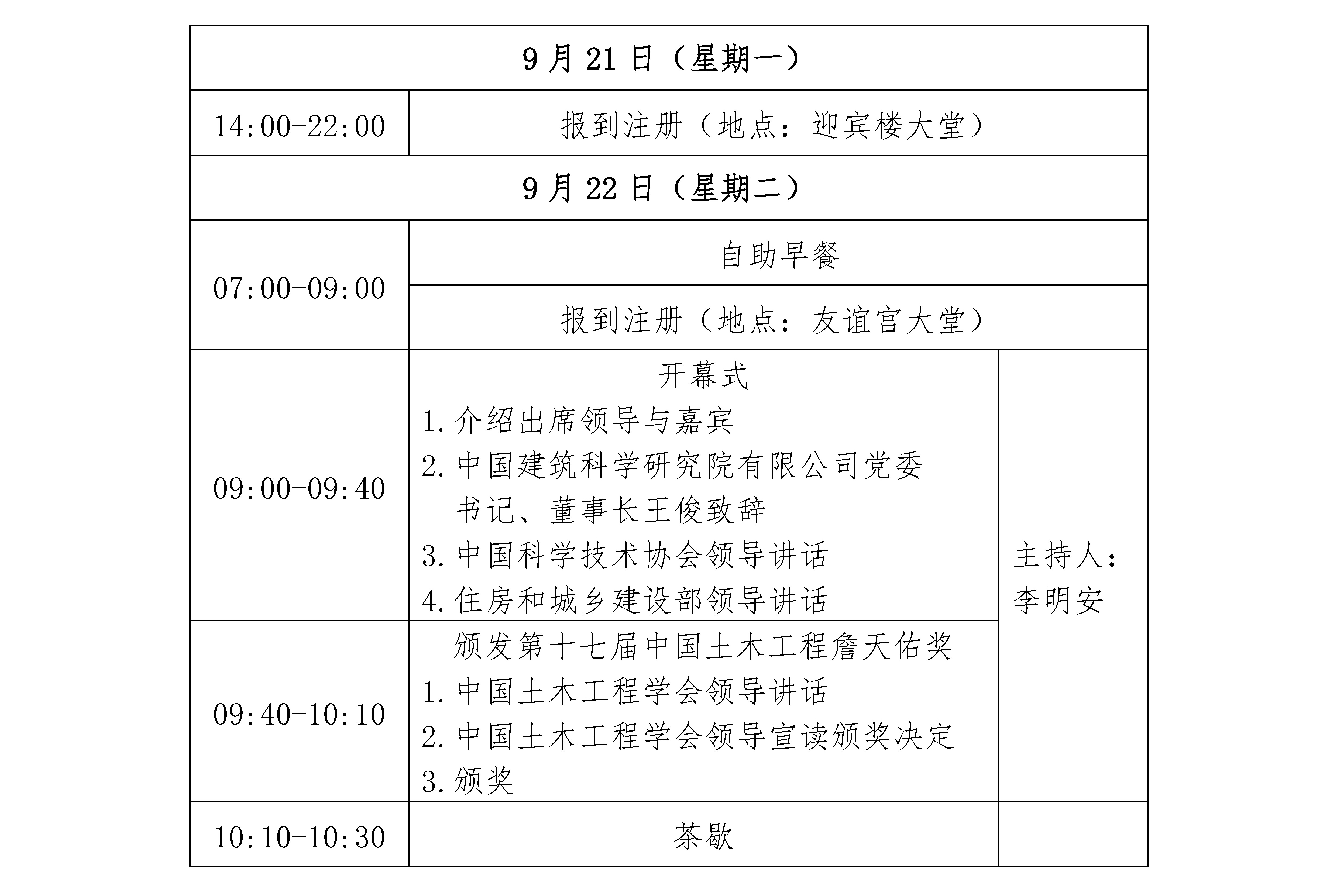 中国土木工程学会2020年学术年会暨第十七届中国土木工程詹天佑奖颁奖大会,定于2020年9月22日在北京召开,欢迎全国广大会员和土木工程科技工作者届时出席会议,现将有关事项通知如下: