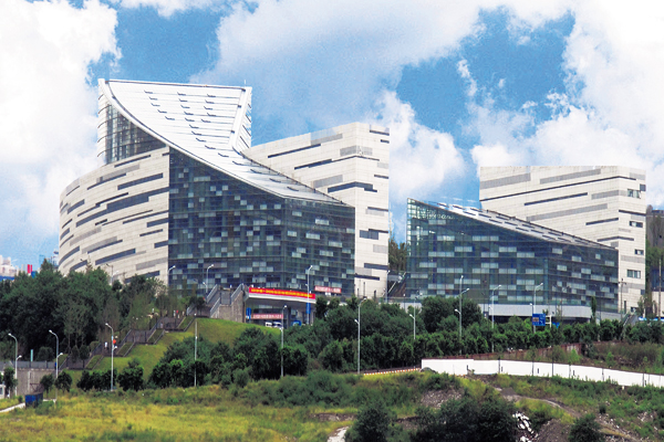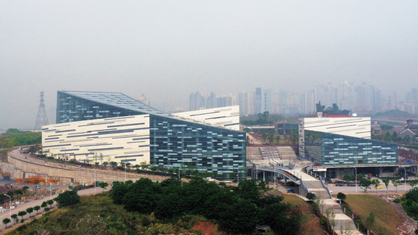 一、工程概况 重庆科技馆位于重庆市江北城市规划的景观轴线上,是重庆市的十大社会文化事业基础设施重点工程之一,被定位为重庆市的标志性建筑之一,是面向公众的现代化、综合性、多功能大型科普教育活动场馆。 科技馆造型简约明快,弓形的侧面体现了重庆的地形特点,外立面大量采用石材与玻璃,通过对这两种材料的展现和解读,恰到好处地表达出重庆“山水之城”的特征。在建筑形式上,球形科技影院复制了地球的完美,夜幕低垂的时候,宛若明珠的它在透明的玻璃块体中绚丽夺目,使得整体建筑形象具有强烈的视觉冲击力和吸引力。 重庆科技馆总用地面积24764㎡,总建筑面积40302㎡,其中景观通廊广场以下部分建筑面积4441.3㎡。科技馆由主楼和附楼两部分组成,在主、附楼间以景观主轴广场连接,并在其下部设置整体连通的车库和设备用房,使主、附楼有机地联系在一起,既相互独立,又相互连接。主楼为地下1层,地上4层,地上部分主要布置展厅及科技影院;附楼为地下1层,地上5层,地上部分主要布置多功能会议厅、会议室、培训及附属办公用房。 工程基础采用人工挖孔桩独立基础、扩底墩基础、条形基础等;主体结构采用钢筋混凝土框架剪力墙结构体系,球形影院外围护结构采用圆管单层网壳结构,主楼外围护结构采用格构组合钢柱与透明玻璃幕墙相结合的结构形式,主楼屋面采用空间双曲桁架结构形式,附楼屋面采用网架结构形式。 工程于2006年11月9日开工建设,2009年6月15日完成竣工验收,工程总投资2.4亿元。