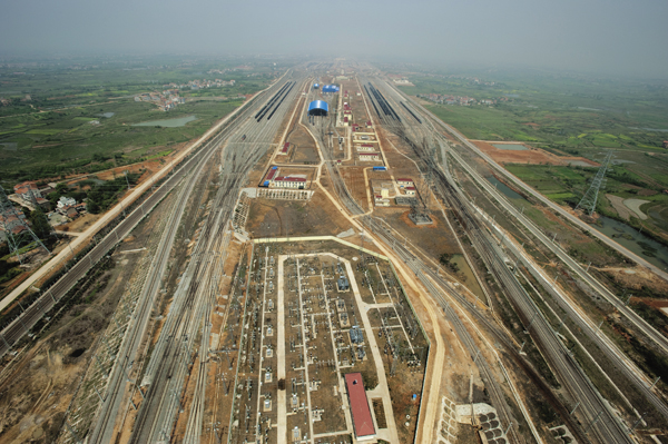 武汉北编组站是我国目前一次建成的亚洲规模最大的路网性编组站,也是国内首个采用编组站综合集成自动化系统(CIPS)的新建编组站。车站采用双向三级七场站型布置,上、下行系统均为一次性建成纵列三级三场并设交换场,配备完善的机务车辆等设备,采用四推双溜自动化驼峰、点连式调速系统,运用编组站综合集成自动化系统、GSM-R无线通信系统及车辆安全动态检测等先进管理技术。