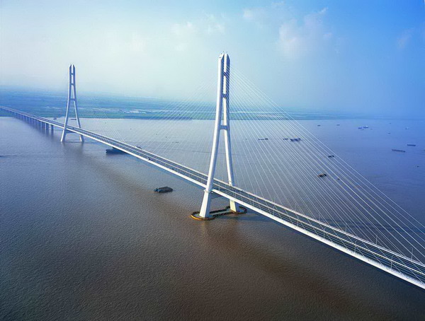 一、工程概况 南京长江第三大桥位于现南京长江大桥上游约19公里处的大胜关,南岸起点在绕城公路刘村互通,往东接南京市规划的二环线,北岸终点为浦口境内的宁合高速公路张店互通,往北接宁淮高速公路。大桥全长约15.6km,其中跨江主桥长4.744km,其主跨为双塔双索面钢塔钢箱梁斜拉桥,桥梁跨径布置为(63+257+648+257+63)m。全线按双向六车道高速公路标准建设,设计行车速度100km/h,桥梁标准宽度32.0m,设计洪水频率1/300,最高通航水位8.71m。工程概算33.63亿元,于2003年8月29日开工建设,2005年10月7日建成通车。该桥最大跨径648m,在已建成的大跨径钢塔斜拉桥中名列中国第一、世界第三。 二、新技术应用与科技创新 1、国内外首次采用人字形曲线钢塔设计,总体造型新颖、线形流畅、结构合理、景观协调,开创了我国特大跨径斜拉桥采用钢塔结构的先例。 2、在钢塔制造及安装工程中,采用自主创新的钢塔节段曲线线形控制、焊接变形控制、端面机加工找正及定位、三维跟踪测量划线以及大型钢构件空中翻身系统等新技术,实现了钢塔制造及安装的高效率、高精度和平稳安全施工,达到国际先进水平。 3、通过塔身钢混结合段传力机理的试验研究,采用钢筋混凝土PBL剪力键作为传递荷载的主要构件,确保结构传力要求。 4、针对桥位水深流急的特点,采用特大哑铃形钢套箱和钻孔桩钢护筒构成钻孔桩施工平台,配合进行水动力条件下超大基础结构稳定性研究和深水基础局部冲刷研究,形成深水高桩承台基础施工新技术,发展了我国深水基础设计、施工技术水平。 三、获奖单位 南京长江第三大桥建设指挥部,中交公路规划设计院有限公司,湖南路桥建设集团公司,中交第二航务工程局有限公司,中铁宝桥股份有限公司,中铁十九局集团第二工程有限公司 |