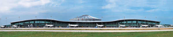 设计目标为达到枢纽型国际中型航空港建筑规模,满足波音747等大型客货飞机的运行,旅客吞吐量1000万人次。