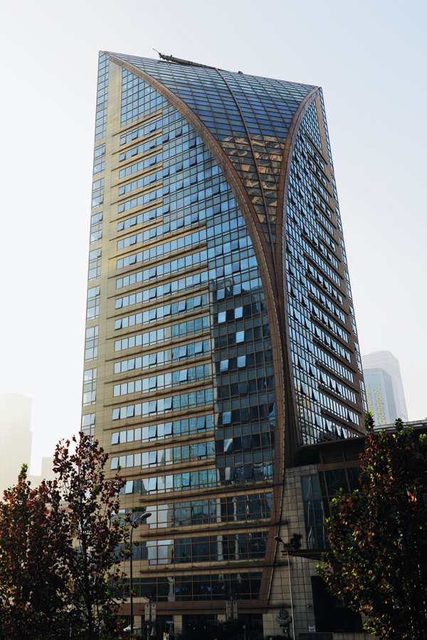项目位于重庆市南岸区南坪会展中心西北角,占地面积6842m²,总建筑面积144891m²,是重庆第一个建成的绿色低碳写字楼。工程为典型的坡地超高层建筑,由裙楼及两座塔楼组成(一幢高220m的54层酒店塔楼,一幢高110m的22层办公塔楼),其中裙楼地下4层为餐饮、商业、车库、设备用房等,地上则为办公、会议、酒店等用房。项目为双塔设计,前低后高,相互辉映,外立面采用石材和幕墙,表达出建筑华丽大气的特征,同时与周边环境保持良好衔接和极佳视觉形象,生动展示了重庆“山水之城”的坡地建筑风貌特色。