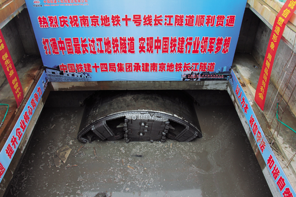 该工程位于南京市浦口区,是国内首座采用单洞双线方案过江的城市地铁盾构隧道,隧道全长3600m。采用直径11.64m泥水盾构一次掘进施工;工程特性主要为穿越砾砂、卵石圆砾等强透水地层,其中江中段长2300m,最大埋深达58m,隧道先后下穿自来水厂、临江鱼楼、长江大堤、江心洲民房建筑群等重要建(构)筑物。