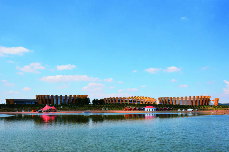 鄂尔多斯市体育中心总建筑面积259000m2,由体育场、体育馆和游泳馆组成,共76000个观众坐席。地下2层,地上5层。是内蒙古自治区“十二五”重点规划项目。体育场犹如金色的马鞍,体育馆、游泳馆形似优美的海螺。工程整体设计简洁,造型新颖独特。从多个方面展现了蒙古族的神韵和性情。结构设计首次采用外倾15°巨型混凝土薄壁核心筒柱+大跨度空间管桁架屋盖结构体系,该设计荣获内蒙古自治区优秀设计奖。