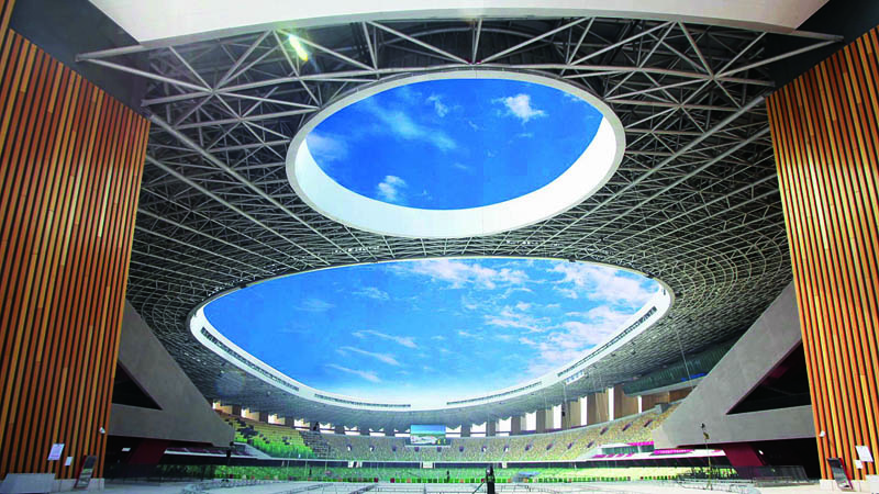 工程先后荣获鲁班奖、钢结构金奖等诸多奖项。工程建设为2015年第十届全国少数民族传统体育运动会圆满举办奠定了坚实的基础。经近两年使用,功能满足设计和使用要求。通过新技术的应用,取得了良好的经济效益。