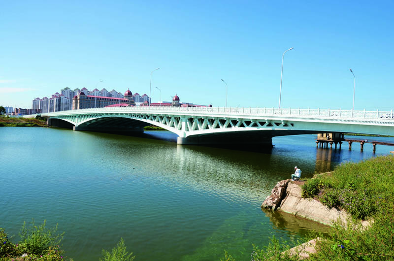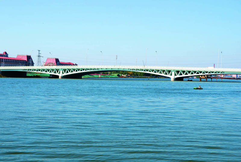 吉兆桥工程位于天津市天钢柳林地区,跨越海河,是海河中游后五公里提升改造的第一座过河桥梁,全长907m,主桥跨径布置为55m+90m+55m,桥宽40m,为三跨变截面连续钢混组合桁架桥。