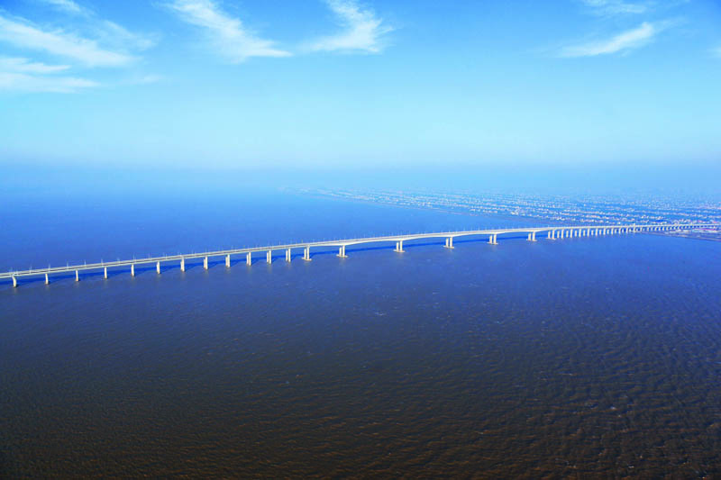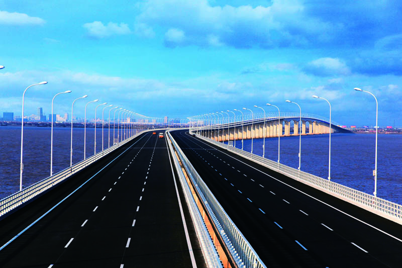 崇明至启东长江公路通道工程全长51.763km,跨江大桥长6.84 km,主桥为102m+4×185m+102m六跨变截面连续钢箱梁桥,是江苏与上海直接对接的首座特大型跨长江大桥,由江苏省与上海市共同建设。其中上海段长30.735km,由28.439km接线和2.296km跨江大桥组成;江苏段长21.028km,由4.544km跨江大桥和16.484km接线组成。