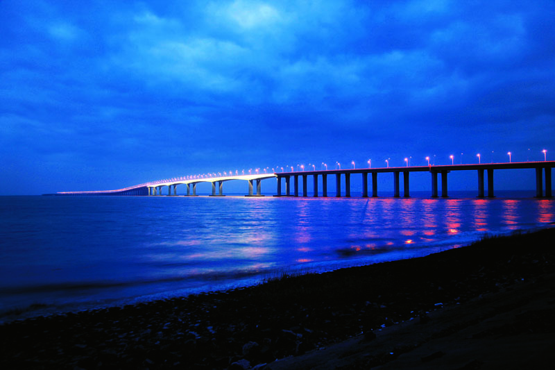 1. 主桥采用主跨185m大跨度变截面连续钢箱梁,引桥采用50m跨径节段预制整孔拼装预应力混凝土连续梁,均创国内同类桥型跨径之最。