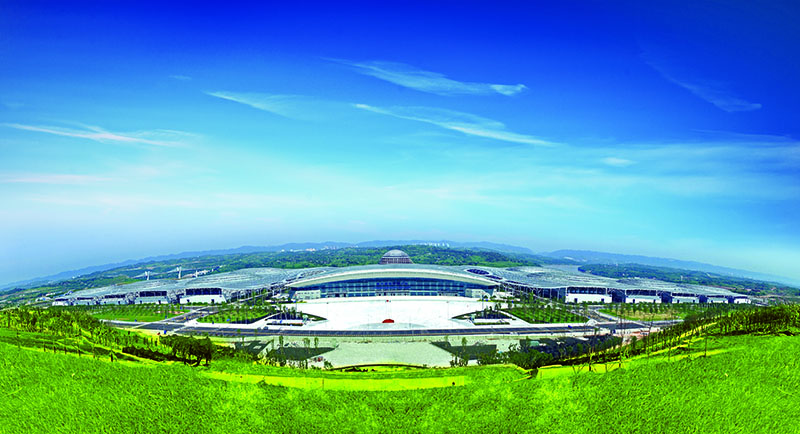 重庆国际博览中心位于国家级改革开放新区—两江新区,为特大型会展类建筑,总建筑面积60万m2。该工程屋盖面积54万m2,为全覆盖铝合金屋盖,形似蝴蝶,为世界上单体用铝量最大(1万t)的建筑。
