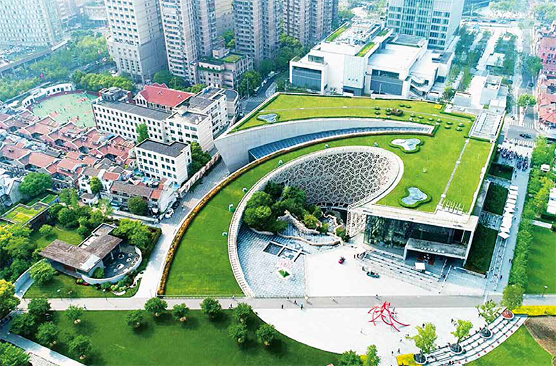 该工程位于上海市静安雕塑公园内,设计灵感来源于活化石“鹦鹉螺”的壳体结构,盘旋而上的绿植屋面从公园内冉冉升起,静动有致的建筑宛如一只“绿螺”。整个建筑设计树立了生态、节能、减废、健康的绿色目标,从形式到内质都体现出“生于自然,融于自然,还于自然”的绿色精神。