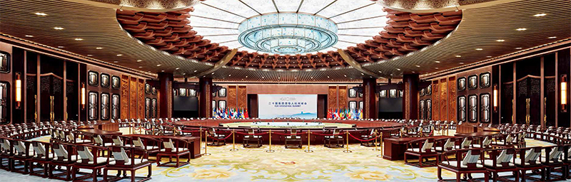 2.针对G20主会场精装修与机电工程品质高工期紧,研发了具有传统文化装饰特点的成品化设计、模块化制作与标准装配式安装技术,研发应用了逆向吊顶安装施工工艺。