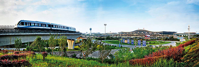 7.利用中低速磁浮系统技术最小转弯半径可达50m、列车爬坡能力可达70‰、噪声小、无辐射等方面的优势,长沙磁浮快线灵活选线,沿城市道路、高速公路绿化带敷设线路,大幅减少工程拆迁量,有效地节约了不可再生的土地资源。