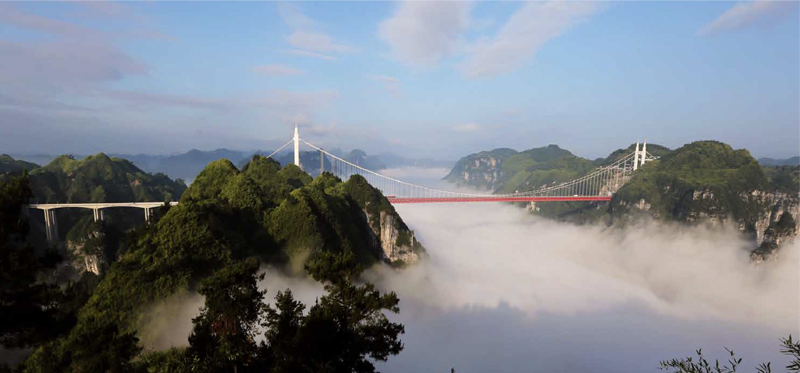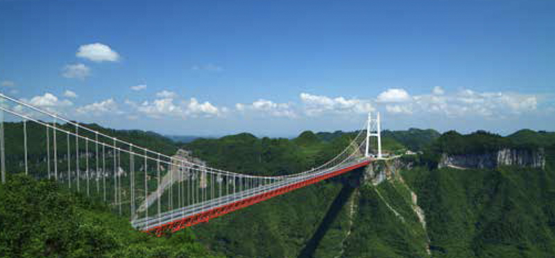 矮寨大桥位于湖南省吉首市矮寨镇,是国家高速公路网长沙至重庆高速公路(吉首至茶洞段)的控制性工程。大桥西起坡头隧道,上跨德夯大峡谷,东至矮寨三号隧道,线路全长1779m。