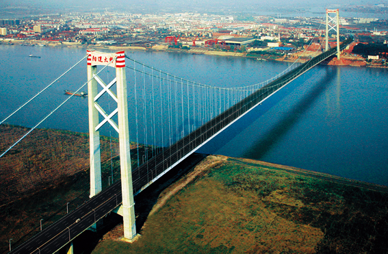 该工程是国家“十五”重点建设项目,位于武汉市东北,北岸为武汉市新洲区,南岸为武汉市洪山区,是京珠、沪蓉国道主干线武汉绕城公路东北段的重要组成部分和控制性工程。项目全长10km,由北接线、南接线和跨江大桥三部分组成,其中跨江大桥全长2735m,主跨为1280m的双塔钢箱梁悬索桥,南引桥1175m和北引桥280m均为预应力混凝土连续箱梁,南接线415m,北接线6850m,沥青混凝土路面。