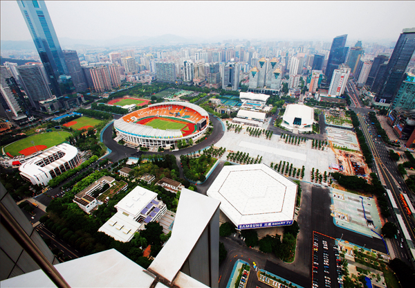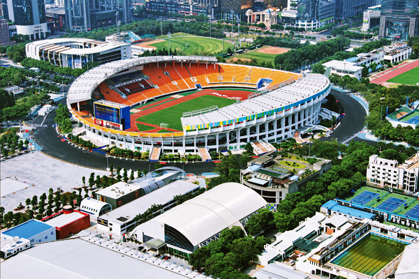一、工程概况 广州天河体育中心是2010年第十六届亚运会的比赛场馆群,包括足球、篮球、网球、乒乓球、羽毛球、跳水、游泳的训练及比赛场馆,是主要比赛场馆之一。 原广州天河体育中心占地面积约58万㎡,建筑面积9.6万㎡,包括体育场(主、副场)、游泳馆、体育馆、网球馆、室外网球场、网球场综合楼、羽毛球馆、棒球场、大世界保龄球馆等,场馆结构为钢筋混凝土框架结构,部分为钢结构,建于1986年,用于1987年第六届全国运动会,至今已二十余年。由于建成使用时间较长,设施陈旧落后,部分器材、设备及装修已出现不同程度的破损,功能用房、器材、设备和设施不能满足亚运会比赛的使用要求,必须对场馆进行综合改造。 本项目包括对体育场(主、副场)、游泳馆、体育馆、网球馆、室外网球场、网球场综合楼、羽毛球馆的综合改造,以及新建三层地下空间,包括建筑及场地装修、体育工艺改造、设施和设备更新、消防、灯光照明、节能改造、建筑智能、环保绿化以及地下空间开发利用等内容。其中旧场馆改造建筑面积为9.6万㎡,新建地下空间16.6万㎡,总造价8.3亿元(其中综合改造4.3亿元,新建地下空间4亿元)。工程于2008年7月20日开工,2010年8月5日竣工。