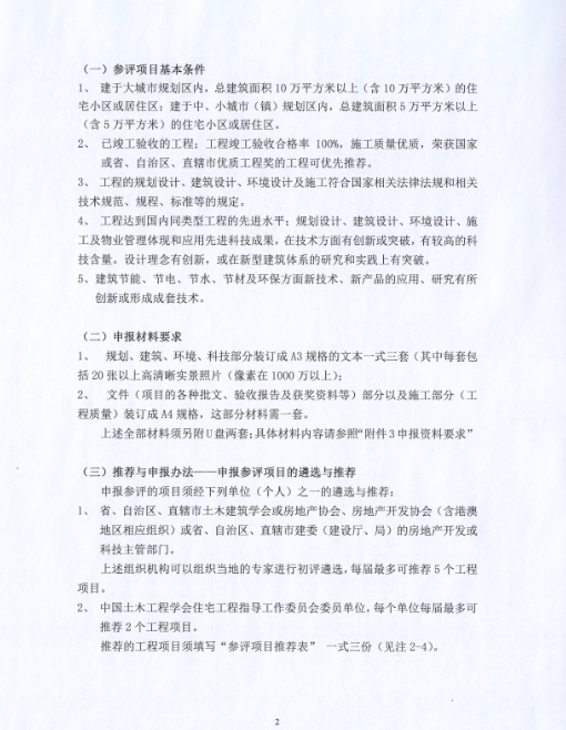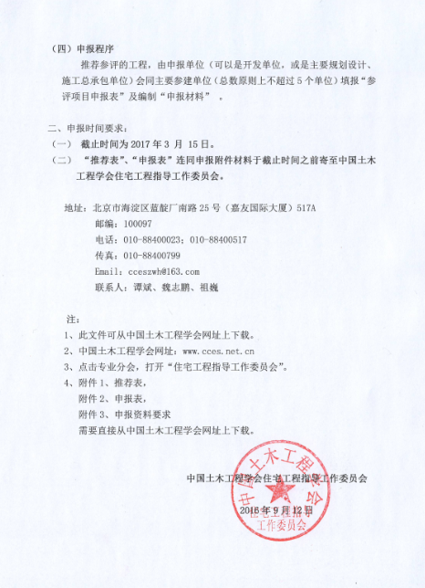 关于推荐和申报“2017中国土木工程詹天佑奖 (住宅小区)”参评工程的通知