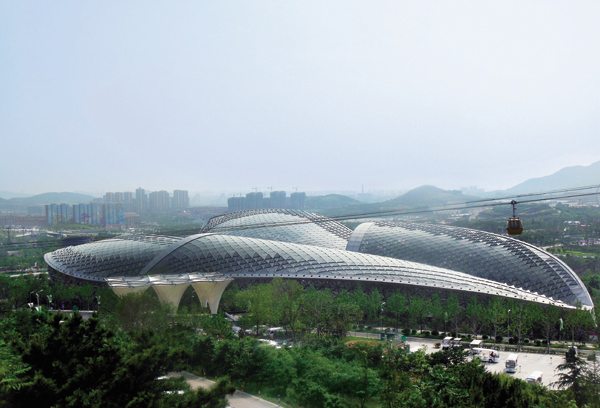2014青岛世界园艺博览会场馆工程位于青岛市百果山,园区总体创意为“天女散花”,布局为“两轴十二园”,规划面积241hm²,场馆总建筑面积22.37万m²,主要包括主题馆、植物馆、天水综合服务中心、地池综合服务中心、园艺文化中心、世园村参展服务中心、世园大厦等场馆工程。场馆建设以自然创造为本底,科技创新为支撑,文化创意为灵魂,打造集科普教育、集成示范、低碳实践、智慧引领于一体的综合性工程。