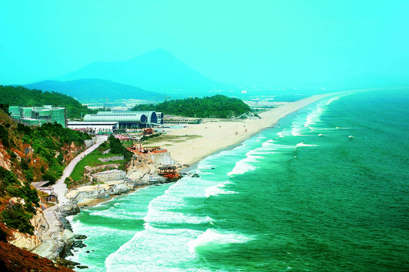2. 结构设计采用“连续组合拱”结构形式,外饰面采用清水混凝土做法,实现40m大跨度、屋盖没有典型梁柱形状的复杂多拱结构设计。充分利用海洋风能、自然光、潮汐等的节能设计,体现以“展现自然、回归自然”的可持续性节能技术。