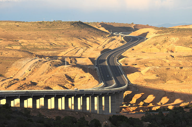 东西高速公路是阿尔及利亚东西向干线公路,也是全长近7000km的北非马格里布地区干线高速公路的重要组成部分。项目全长1216km,分东、中、西三个标段在全球范围招标,其中中、西两个标段由中国国际信托投资(集团)有限责任公司和中国铁建股份有限公司联合中标,由中交第一公路勘察设计研究院有限公司负责设计,两段总里程长达528km,采用双向六车道高速公路标准建设,设计速度按地形类别分为100km/h和120km/h两种,路基宽度33.0m,桥梁17697m/261座,隧道2470m/2座,互通立交30处,这在中国承接的国际公路项目中,工程规模首屈一指。