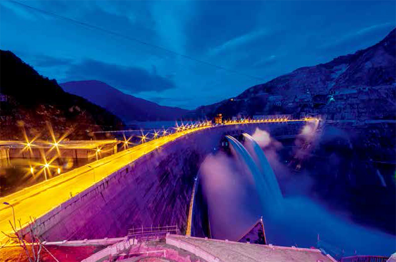 5.工程重视节能、节地、节水、节材和环境保护。通过优化开关站布置和骨料运输及加工系统,在节能的同时,节约土地1000余亩;充分利用开挖料,节约石料400万m3;施工用水循环利用,减少用水280万m3。工程共节约投资2.8亿元。建立了珍稀动、植物保护区和自然保护区,取得了良好的成效。