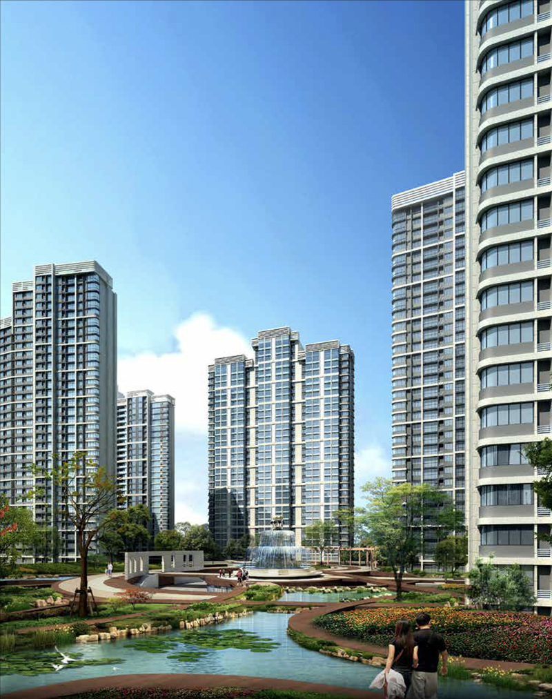 项目总建筑面积31.42万m2(其中住宅19.9万m2,商业服务及配套2.02万m2,地下9.5万m2),容积率3.0,建筑密度18.78%,规划绿化率为33.6%,实际绿化率为40%(不含7100m2的屋顶绿化)。总户数为1328户,车位为1992个(其中地上180个,地下1812个)。