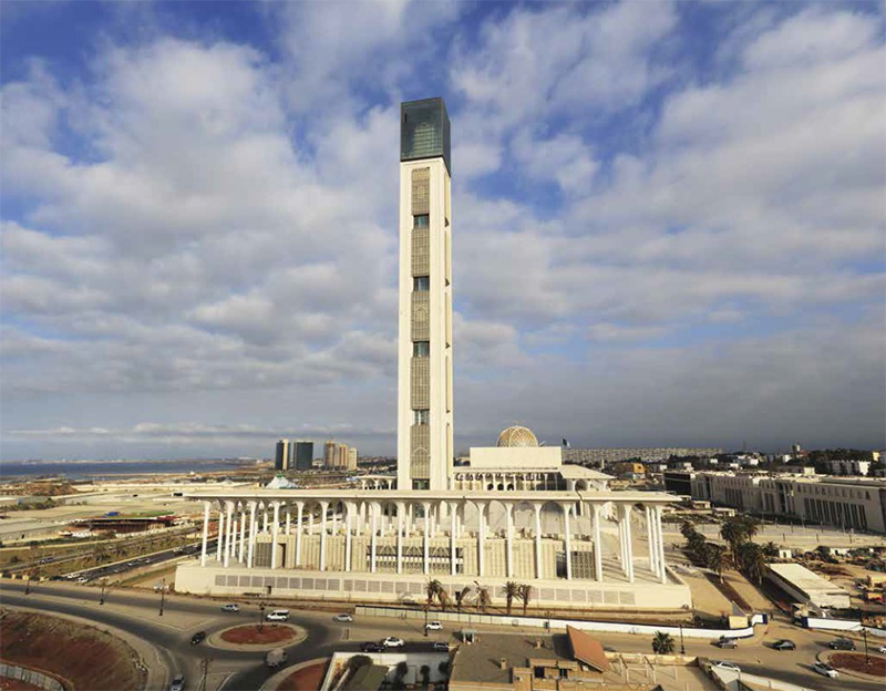 工程位于阿尔及尔湾,紧邻地中海。项目占地面积 27.8 万 m2,建筑面积40万m2,是阿尔及利亚文化、宗教和旅游的中心。由礼拜大殿、宣礼塔、图书馆、伊斯兰文化研究中心、古兰经学院等 12 幢建筑组成,是一个群体建筑项目。