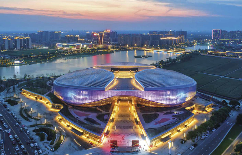 工程在立面上通过八大幕墙系统完美展现红船造型,在平面上以幸福的三叶花布局三塔联建,集剧场、美术馆和图书馆等“六馆一厅”于一体,七大文化空间装修迥异。作为建党百年献礼工程,是首个集中华传统历史文化与中国红色革命精神的大型文化综合体,在沉浸式感悟“开天辟地,敢为人先”的红船精神内涵的同时,提升人民群众对美好生活的切身感受,对促进全市文化事业和文化产业发展,更好地满足人民群众对优质文化资源的需求具有重要意义。