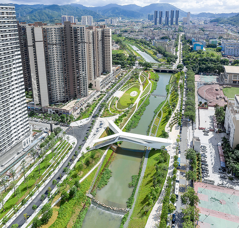 4.首创基于恢复河流生态原真性的低干预景观技术,实现“重塑滨水空间结构、构建韧性生态水岸、激活滨水城市生活”等生态景观技术,助力坪山河打造成深圳东部“生态长廊”。