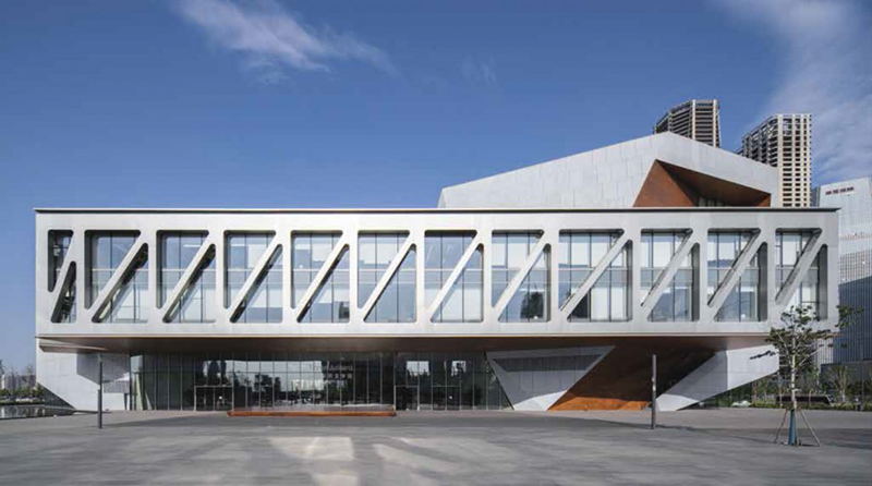项目包括一个700座音乐厅,一个300座的演奏厅及一个250座的黑盒剧场,音乐厅、演奏厅采用了葡萄园式的看台设计,演艺厅混响时间可调范围长达 1s,可调精度至毫秒。室内采用顶级声学材料精装设计,外檐为玻璃、 GFRC、天然木纹板、气动采光顶等类型多样的幕墙体系。