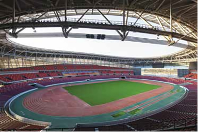 郑州市奥林匹克体育中心位于郑州西四环中原路交叉口,总建筑面积 58.4万m2,包括 6 万座甲级体育场、1.6万座甲级体育馆、3000 座游泳馆和配套商业,国内首次将星级酒店集合于大型体育场中,是集赛事、酒店、商业于一体的体育休闲服务综合体,成功举办了第十一届全国少数民族传统体育运动会,作为新一代综合性体育场馆的典范,有力促进了中原区域体育产业发展。