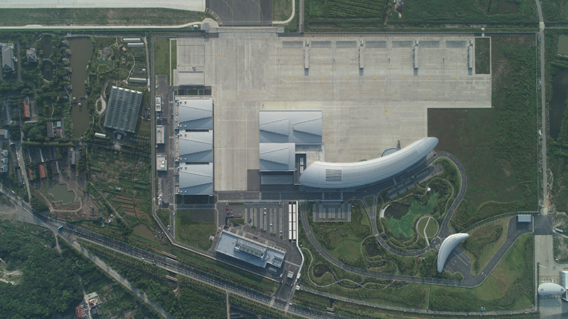 工程建设地点位于浙江省舟山市朱家尖岛,占地40万m2,包含10个单体、12万m2停机坪及 1500m 地下管廊,设有飞机生产装配、停机坪、办公交付5 大功能区,是集飞机内饰安装、外饰喷漆、交付办公于一体的大型群体工业厂房建筑。该工程是国家领导人 2015年访美时签署的战略合作项目,是中美在航空领域的重大合作,是波音公司百年来第一次海外建厂。