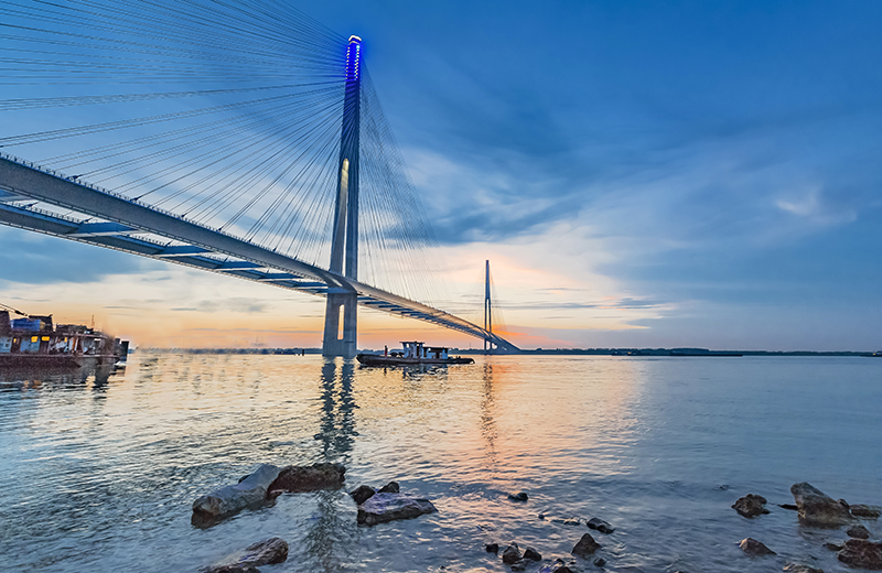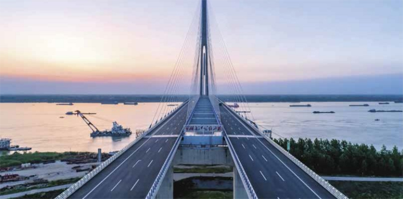 芜湖长江公路二桥位于安徽省芜湖市,是国家高速公路网的关键枢纽、长三角一体化发展的战略通道。项目全长55.5km,桥隧比 62.5%。全线共设互通立交 5 处,特大、大桥 14 座(含长江主桥及引桥),分离立交桥 12座。 高 速 公 路 设 计 速 度 100km/h,新 建 长 江 大 桥 13.928km(跨江主桥 1.622km、 引桥12.306km),北 岸 接 线 20.782km, 南岸接线20.798km。其中新建双向四车道高速公路 34.922km,新建双向六车道高速公路 20.586km。