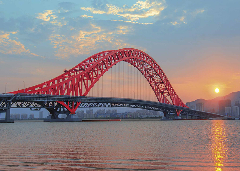 宁波梅山春晓大桥是连接梅山岛与北仑区的特大型跨海桥梁工程,为主跨336m中承式双层钢桁拱桥,是世界首座大跨度下层纵移开启式桥梁。