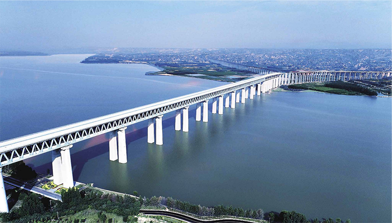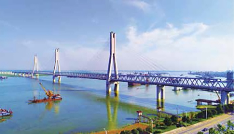 2.首次设计重载铁路三塔钢箱 - 钢桁叠合梁斜拉桥,增设中塔稳定索,改善了桥塔受力和结构刚度,建成世界上最大跨度(406m)三塔重载铁路斜拉桥,设计和施工创造了五项世界第一。