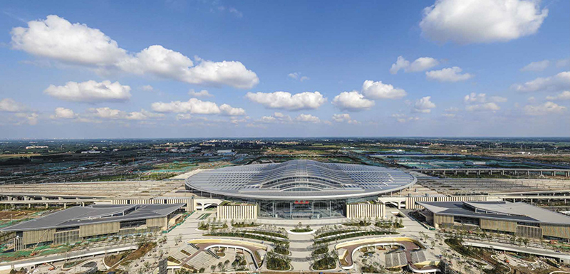 6.雄安站贯彻站城融合理念,首创了“建构一体化”三维曲面清水混凝土技术,创新了站城一体化、全方位、多角度绿色节能技术,集成了智慧客站关键技术,形成了绿色效应驱动下的大型客站智能建造成套技术。