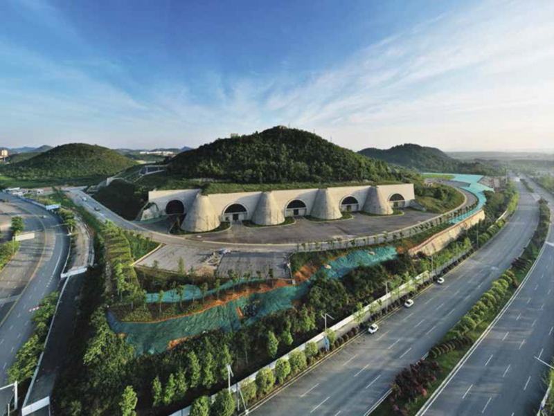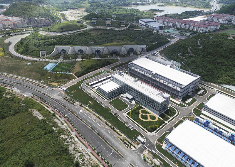 贵安新区腾讯七星数据中心(一期)用地面积约 47万m2,含洞库式数据中心、洞外展厅、消防水泵房、室外工程等,其中,洞库式数据中心建筑面积60685m2,由5条主体洞库+1条柴油洞库+1条人防指挥中心洞库 +13处竖向排风井+1条联络横洞组成,共计36处交岔口,可容纳5万台服务器,为腾讯公司的灾备数据中心。