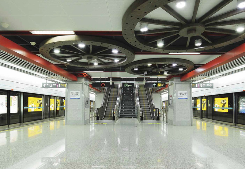 2.首创了地铁地下双层停车场综合建造技术,崔家店停车场位于核心城区,是国内首个、亚洲最大地铁双层地下停车场,停、列检能力达 76 列位,每辆车占地指标 210 m2,创国内最低;节约土地 17.7 公顷,并为上盖物业开发提供建筑面积约 24 万 m2。运用库间设置长315m、宽 20m 下沉式广场,解决了地铁超大型地下停车场消防通道设置难题。