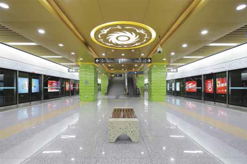 成都地铁 7 号线位于居民区最密集的中心城区二、三环之间,线路全长38.61km,全部为地下线,共设 31 座车站,其中换乘站 22 座,1 座车辆段, 1 座停车场,与已开通的地铁 1 ~ 6号线、8 号线、10 号线交汇成网,建筑总面积 161.91 万 m2。其中,全地下式的川师车辆段 10 万 m2、崔家店停车场 17.74 万 m2,同时设崔家店OCC 控制中心一座。