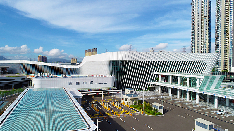 8.深港首个“人车直达”的立体口岸交通建筑;首个采用“ 一站式 ”客货车通关查验模式,首个采用“一地两检” 的旅客查验模式。