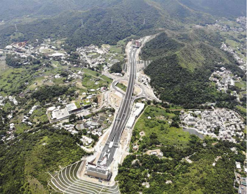 工程项目环境复杂、技术难题多。3 座隧道分别横跨港铁东铁线,经居民区、4A 级景区、国家一级一类深圳水库。莲塘隧道穿越断层破碎带 6 次,上跨各类隧道 11 次,是国内罕见地下立交分岔式隧道,最大开挖断面 428.5m2、跨度 30.01m 为世界最大断面和跨度公路隧道;最小净距排名世界第 2;龙山隧道是香港最长陆上行车隧道,北段土层泥石夹杂。