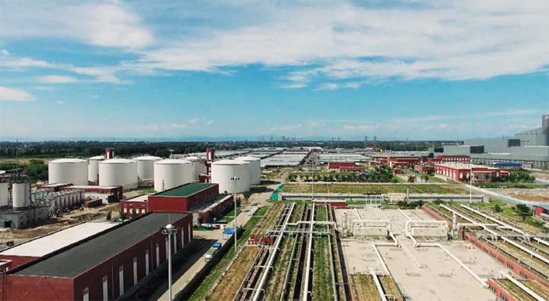 该项目位于北京市朝阳区东部金盏乡,占地26.9 公顷。污泥处理规模为1836t/d,承接本厂高安屯及外厂清河、定福庄、北苑、酒仙桥、北小河6座再生水厂产生的污泥;餐厨垃圾协同处理规模为550t/d;消化液厌氧氨氧化处理规模为4600t/d;污水处理规模为20万m3/d。污泥处理工艺采用 “热水解+厌氧消化+板框脱水+热电联产+土地利用”综合处理方案,达到污泥高产气率、高稳定化、高卫生学指标,处理后的污泥可用于林地、矿山修复等,实现污泥处理处置全链条解决方案;通过实施沼气发电、光伏工程、水源热泵,充分利用清洁能源践行绿色低碳发展;引进餐厨垃圾与污泥协同,不仅解决了城市餐厨垃圾处理中消化运行不稳定、高盐沼液处理费用高等难题,还整体提升了污泥处理沼气产量和发电量,沼气发电规模6MW,光伏发电规模1.62MW。通过降碳、替碳、固碳多项措施,率先成为全国首个能源自给、大型污泥处理中心及再生水厂。